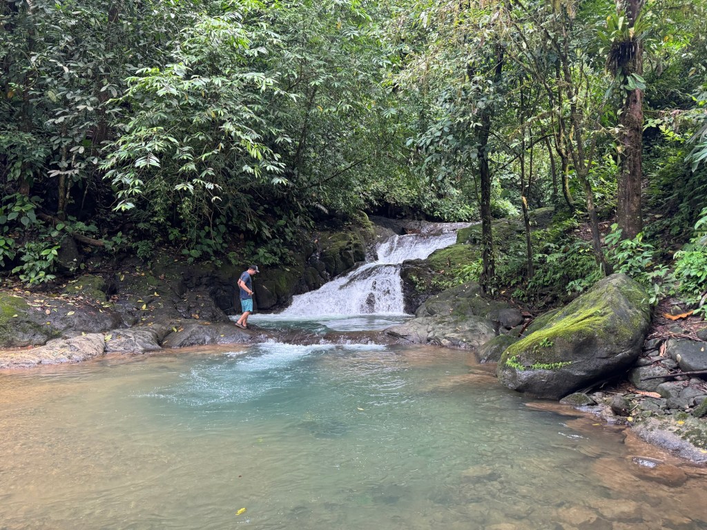 We headed back to the Peligromobile and continued our drive up the road to another spot I wanted to check out. It is crazy to see that there are houses miles up these long, dirt roads. The people would come out to see who we were as we drove by, with curious expressions on their faces as if saying: how did you find this place?? Further along the road, we discovered an unexpected series of waterfalls cascading into blue, inviting pools. Swimming here felt like a private slice of paradise—no crocodiles in sight thanks to the small creek’s rocky terrain.